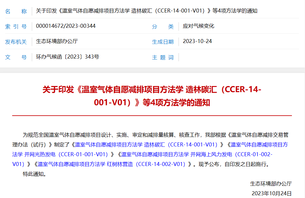 溫室氣體自愿減排項目四個(gè)方法學(xué)發(fā)布